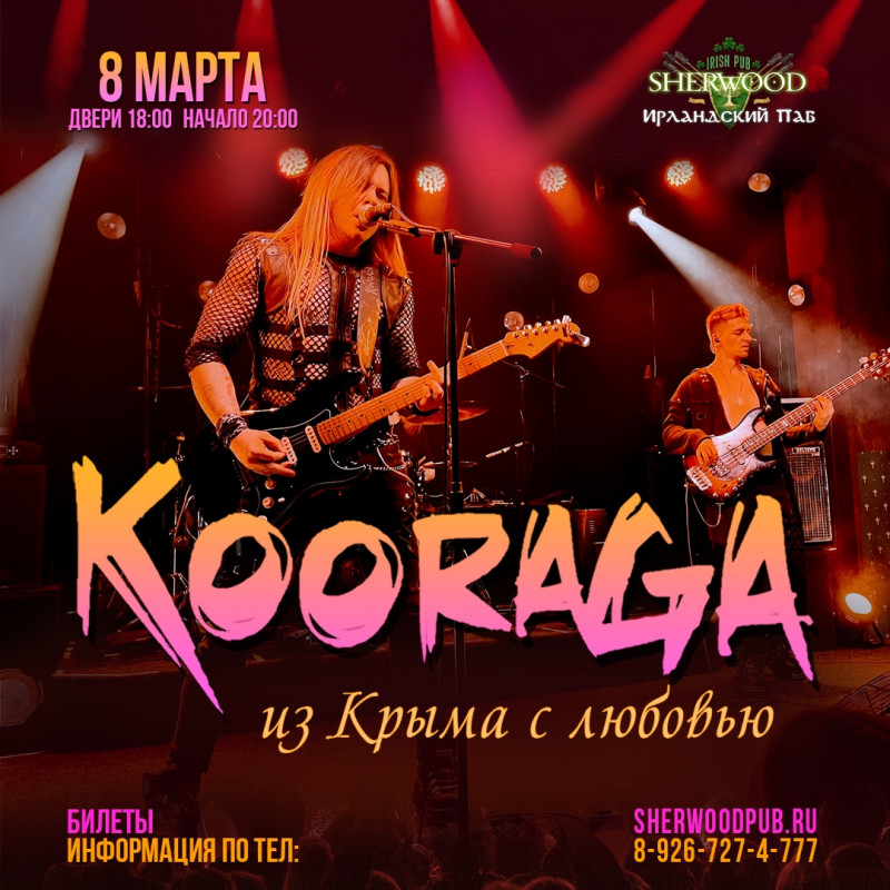 22 года группа Kooraga дарит улыбки, энергию и замечательное настроение абсолютно всем вне зависимости от возраста, музыкальных предпочтений и вкусов, от набережной Севастополя до дальних границ нашей родины! Kooraga – это всегда ярко, оригинально и с курсом на позитив. Несомненно, концерты группы надолго останутся в вашей памяти, потому что музыканты вкладывают душу в исполнение абсолютно каждой композиции.