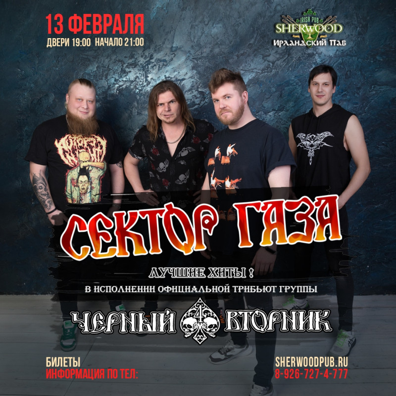 Мы уверены, что даже самые требовательные поклонники «Сектора Газа» по достоинству оценят хиты своих легендарных кумиров в исполнении «Чёрного Вторника».