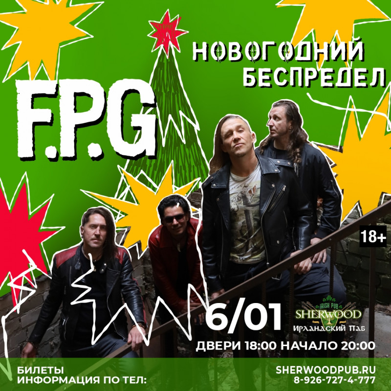 Вас ждёт эксклюзивная праздничная программа из любимых песен, дружеская атмосфера и мощный заряд панк-драйва на целый год. Приглашаем вас стать соучастниками новогоднего беспредела от группы F.P.G в Мытищах!